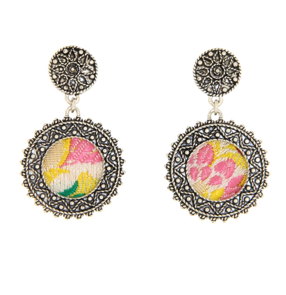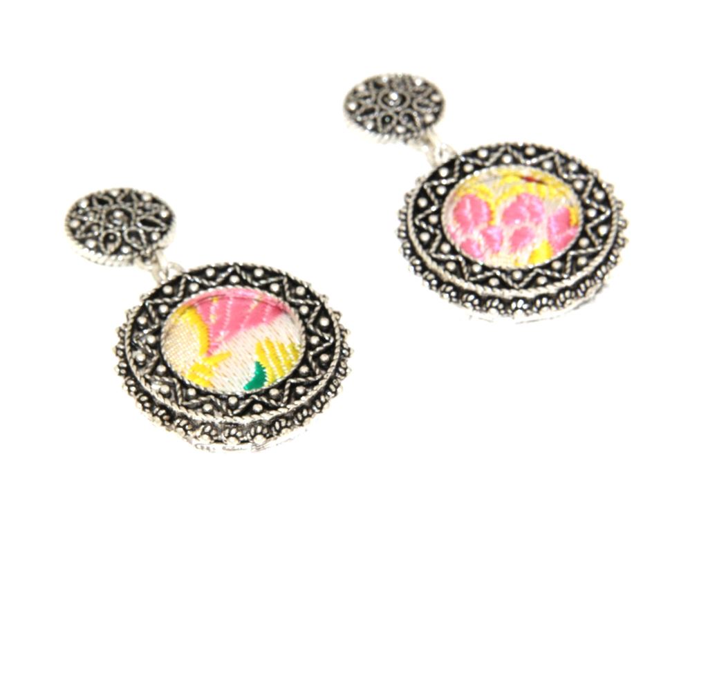 Silver filigree earrings with white brocade | Earrings | RR Orafi in Sassari
